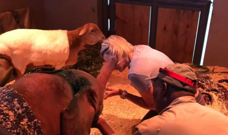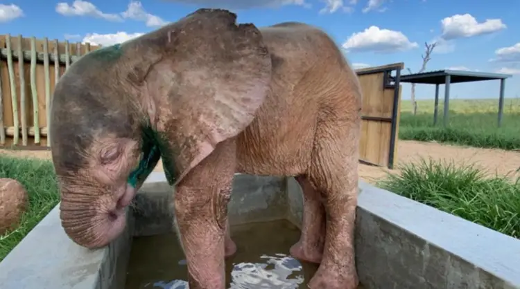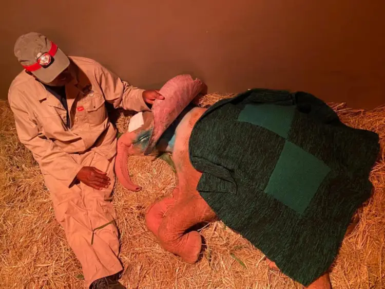 The team at Herd continually adjusted the milk formula in order to improve her drinking and according to her need. As she was not consuming the full amount in the beginning, the wildlife vet Dr. Ben Muller decided to do rectal fluid administration as it has proven to be successful with elephants rather than via a drip as it is less invasive and less stressful for her. This was needed considering her body weight as well as the dehydration of her body following her traumatic ordeal.
