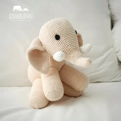 Éléphant câlin au crochet fait à la main. Fabriqué à la main avec beaucoup d’amour pour soutenir les éléphants d’Afrique du Sud.