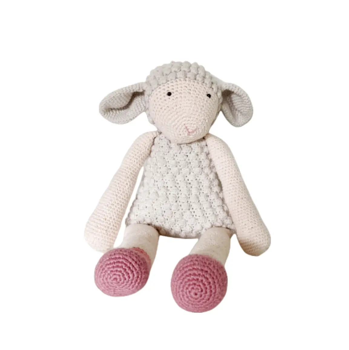 This Cuddly Sheep Lammie is handmade with Ricorumi yarn, known for crocheting amigurumi.