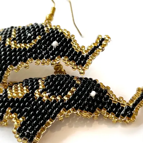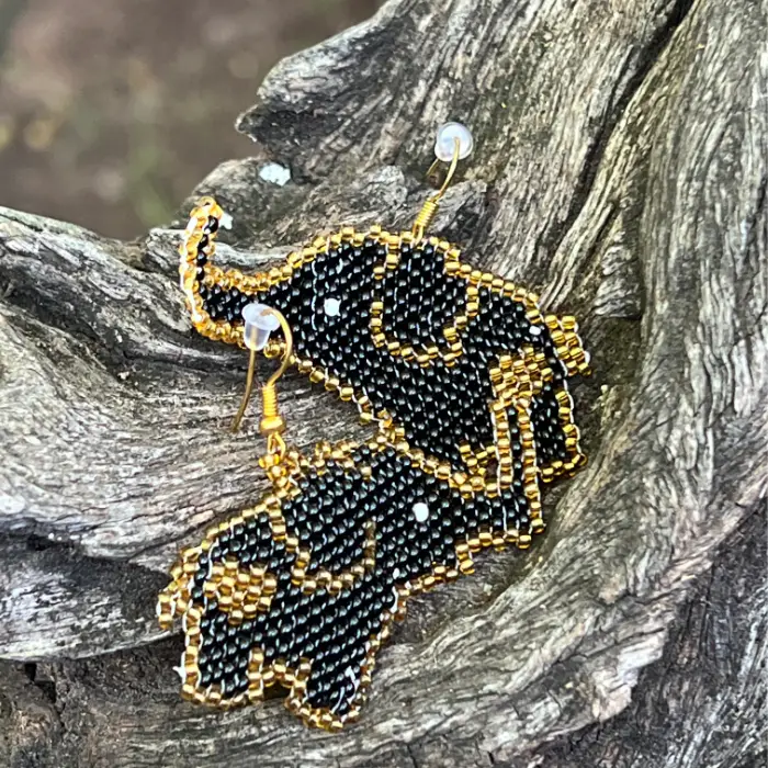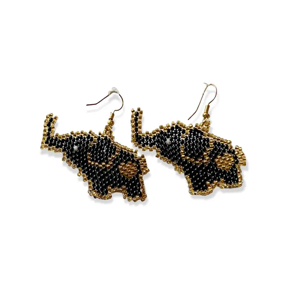 Stylish Earrings Beaded Elephant with beautiful beaded elephant, handmade by the Jabuladies, inspired by the rescued Jabulani elephant herd.