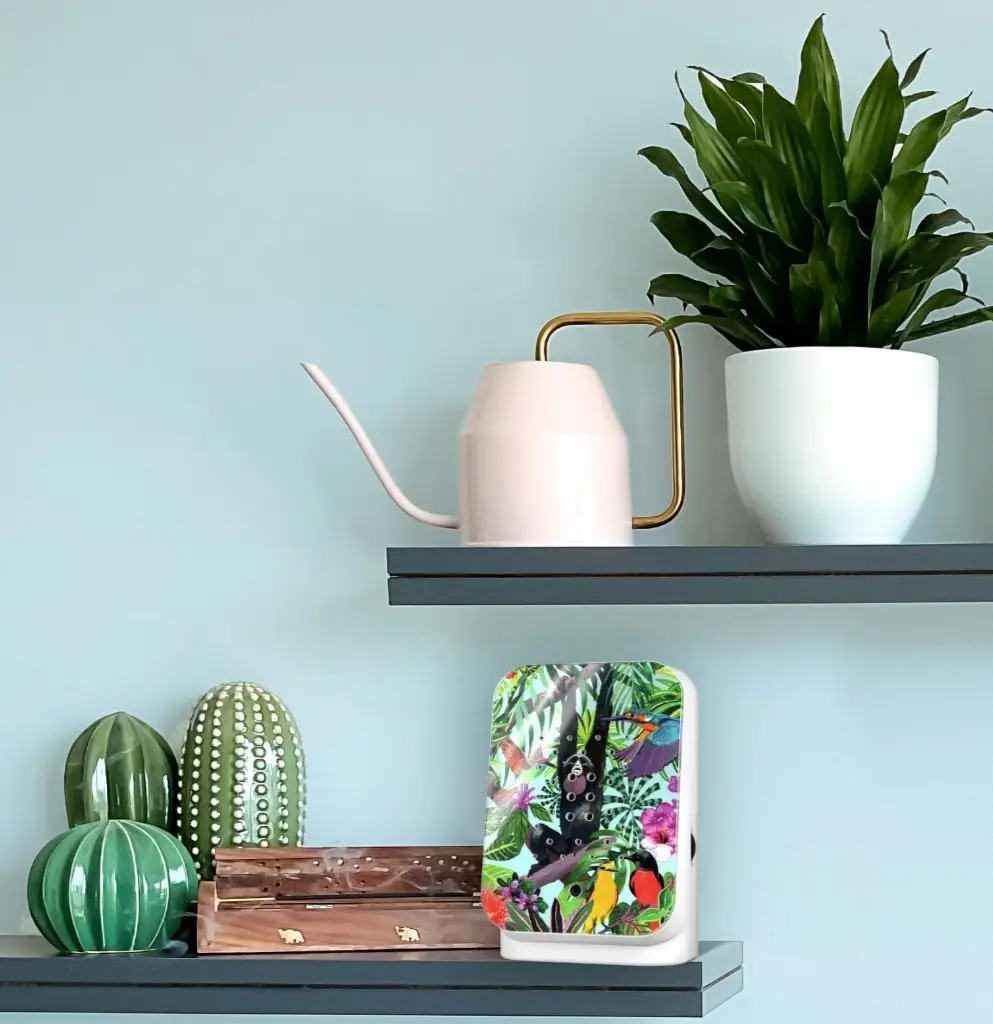 De natuurgeluiden van de Junglebox nemen je mee naar het tropisch regenwoud. Een tropisch paradijs vol energie. Je kunt de Junglebox Tropic overal neerzetten of aan de muur hangen, thuis, op kantoor, in de keuken, op het toilet of in de badkamer.