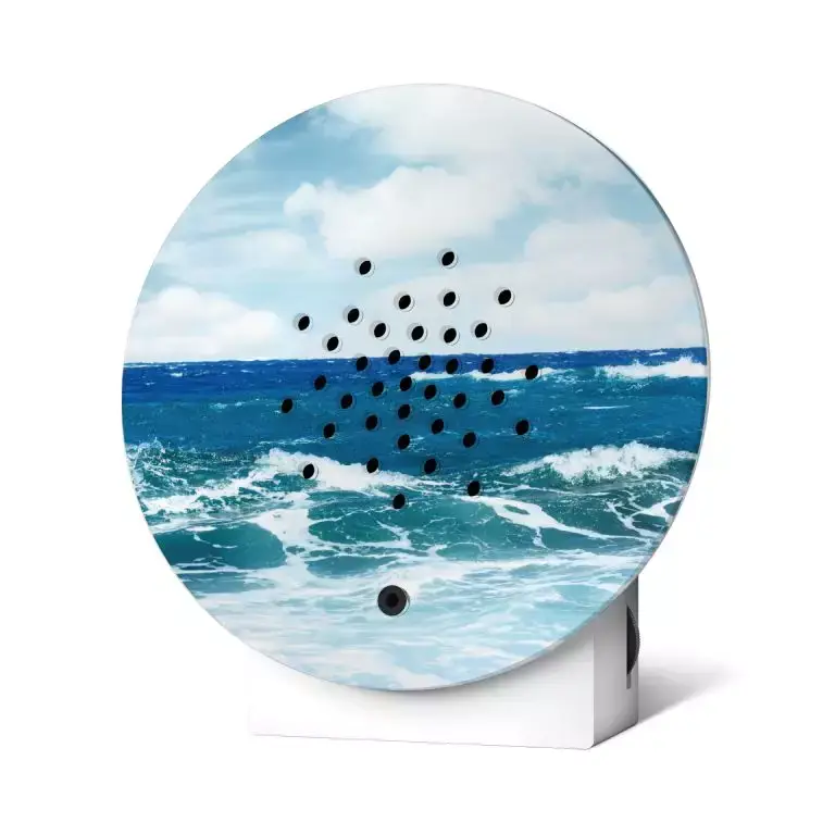 Met dit beperkte designmotief is de Atlantische Oceaan altijd dichtbij. Luister naar het geluid van de golven, proef het zout in de lucht en voel je verfrist. Het beperkte designmotief “Blue Atlantic” maakt het geluid van de Oceanbox nog authentieker. Profiteer nu!