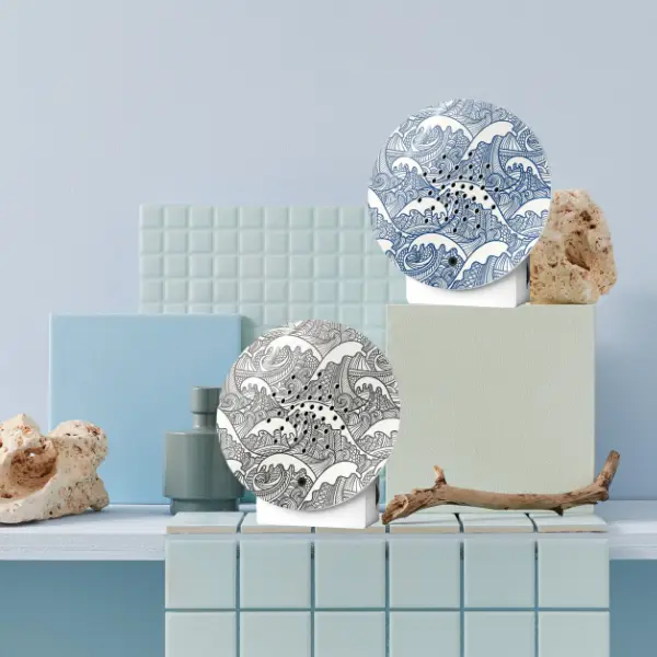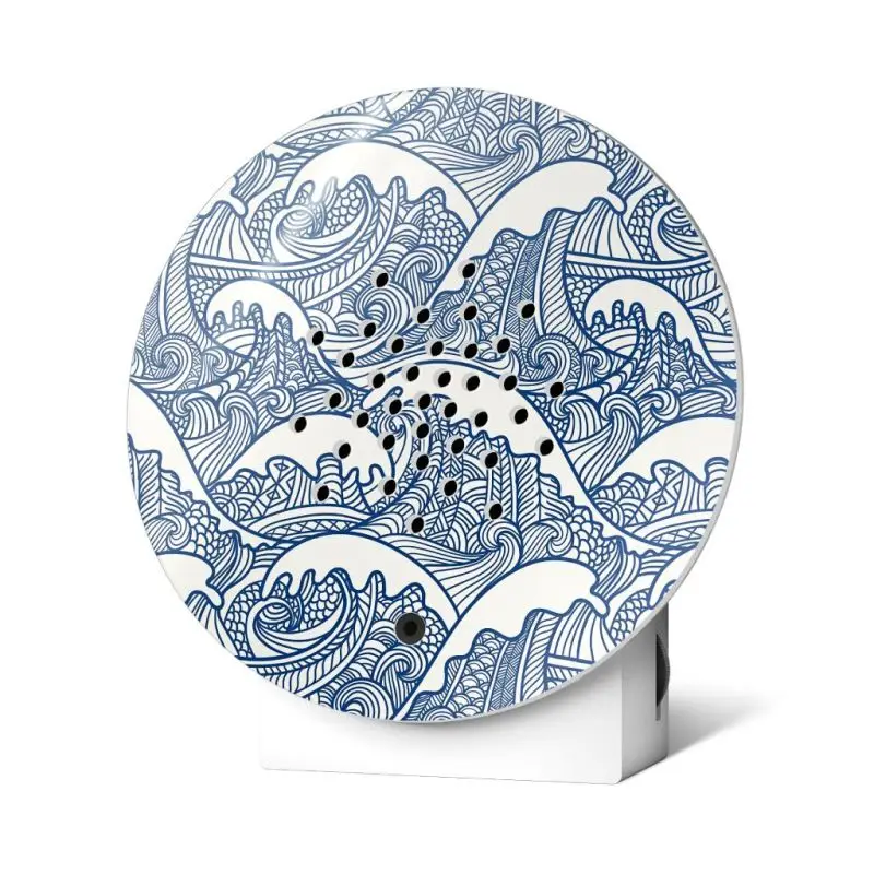 The natural sounds of this stylish Ocean Box Sea Art create a relaxing atmosphere at an unexpected moment. You can place the Ocean Box anywhere or hang it on the wall, at home, in the office, in the kitchen, on the toilet or in the bathroom. This high-quality art print inspires with waves in fresh blue. The fine lines form an elegant pattern that is always a pleasure to look at and makes you look forward to a relaxing day at the beach. So it fits perfectly with the refreshing ocean sounds of the Oceanbox. This new noble design special is now available as a limited edition.