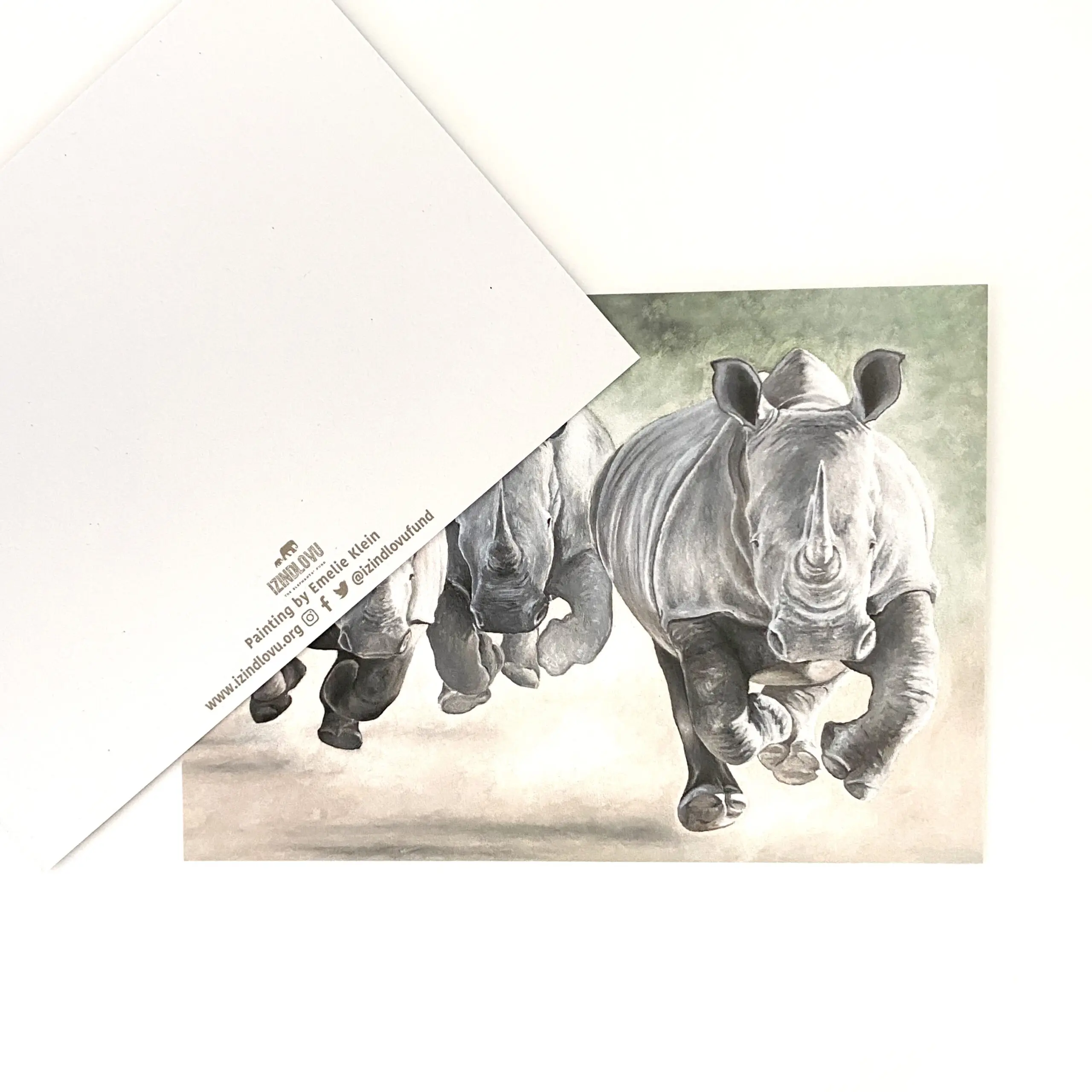 A set of 2 postcards wrapped together with beautiful prints of rhinos.